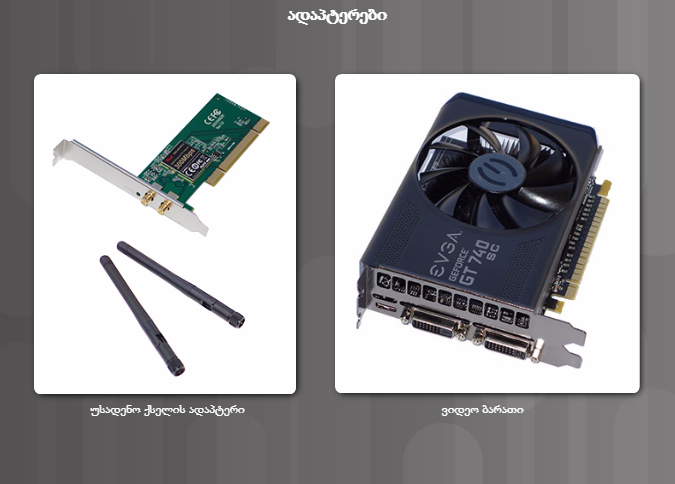 ადაპტერის ბარათები მონტაჟდება შესაბამის გაფართოების სლოტებში დედადაფაზე.