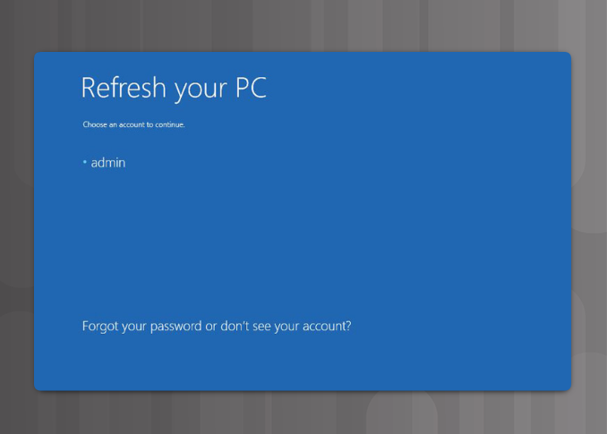 როგორც მე-3 სურათზეა ნაჩვენები, აღნიშნული უტილიტა კომპიუტერის სისტემურ პროგრამებს ქარხნულ მდგომარეობაში დააბრუნებს მომხმარებლის ფაილების ან შემდგომში დაინსტალირებული პროგრამების წაშლის გარეშე. დროთა განმავლობაში კომპიუტერები ნელდება. აღნიშნულის მიზეზია გადავსებული ან ფრაგმენტირებული ფაილების შემცველი ფაილური სისტემები, გაუმართავი დრაივერები და ბიბლიოთეკები. ზემოთ ნახსენები უტილიტა სისტემას ქარხნულ მდგომარეობაში დააბრუნებს სამომხმარებლო მონაცემების შეცვლის გარეშე. Refresh your computer შლის დაინსტალირებულ სამუშაო დაფის (Desktop) პროგრამებს.