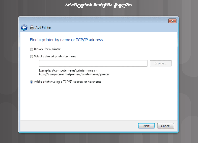 - პრინტერის მოძებნა ქსელში