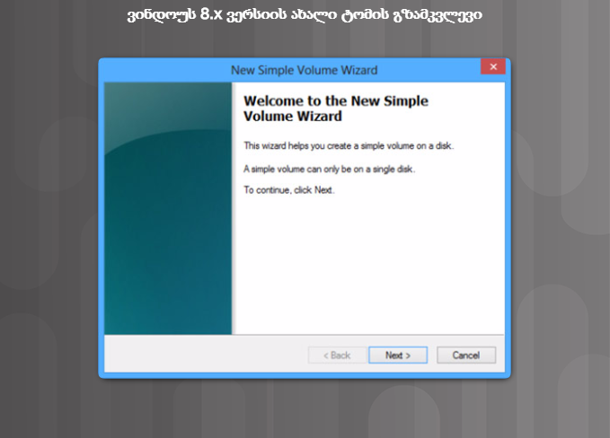 ნაბიჯი 2. აირჩიეთ New Simple Volume (ახალი მარტივი ტომი) როგორც მე-2 სურათზეა ნაჩვენები, გაეშვება New Simple Volume Wizard (ახალი მარტივი ტომის შექმნის ოსტატი).