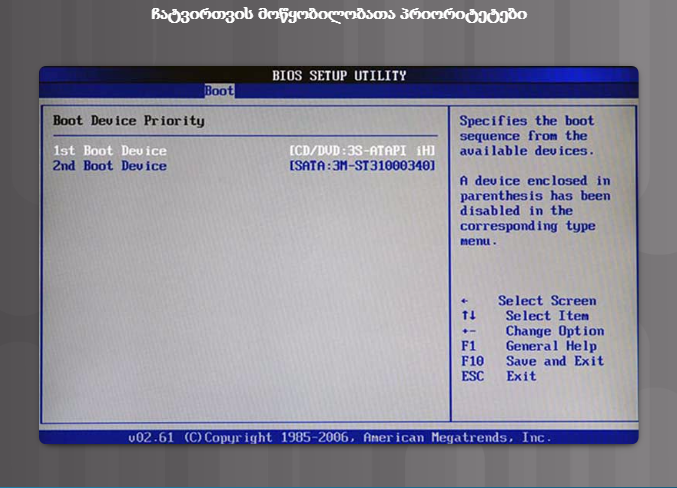 POST-ის შემდეგ BIOS-ი ეძებს და ტვირთავს CMOS-მეხსიერებაში შენახულ კონფიგურაციის პარამეტრებს. როგორც სურათიდან ჩანს, ჩამტვირთავი მოწყობილობების პრიორიტეტულობა განაპირობებს თანმიმდევრობას, რომლითაც მოწყობილობები მოწმდება ჩამტვირთავი განყოფილების არსებობაზე. ჩამტვირთავი მოწყობილობების პრიორიტეტი BIOS-დან განისაზღვრება და თანმიმდევრობა შეიძლება ნებისმიერი იყოს. BIOS-ი კომპიუტერის ჩასატვირთად იყენებს პირველივე დისკს, რომელსაც გამართულ ჩამტვირთავ სექტორს მოუძებნის.