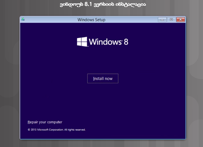 • Install now (ინსტალაცია ახლა) – ნებას რთავს მომხმარებლებს განახორციელონ ვინდოუს 8.1-ის ინსტალაცია